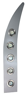 Seitenwange 1200 x 250 mm mit 5 LED-Leuchten Material Edelstahl, gebürstet wahlweise pulverbeschichtet in RAL 9006 Rahmenauftrag: